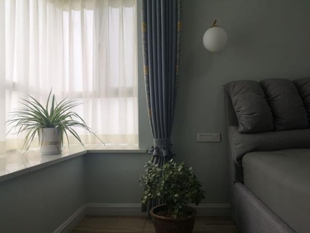 主臥,買的羽梵家居的床,雅蘭的床墊,大的飄窗陽臺,床頭還裝飾了自己喜歡的燈飾。