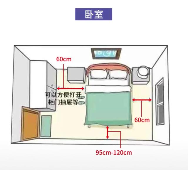臥室里的床無論是放在中間還是墻邊都要留至少60cm的活動空間,如果臥室小,可以考慮小一些的床和柜子,這樣才不會顯得局促擁擠。