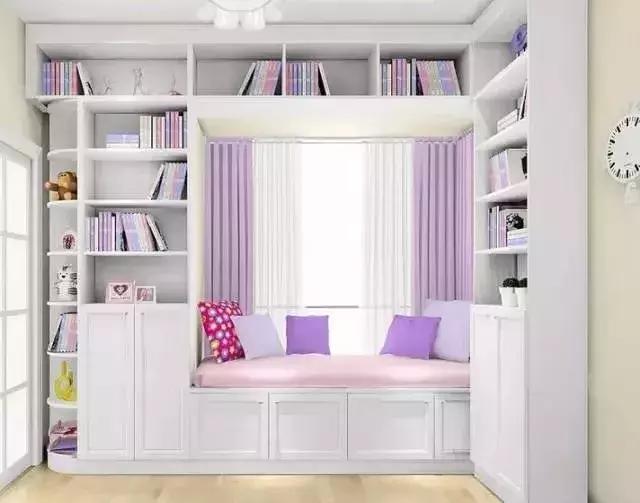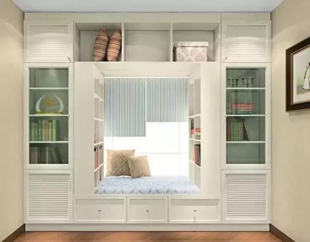 飄窗只是鋪張墊子,做成休閑區?太浪費了,看看別人家怎么裝吧!只要你的飄窗能改造,上、下、左、右,這些位置都可以裝上柜子,休閑、閱讀、儲物都可以。