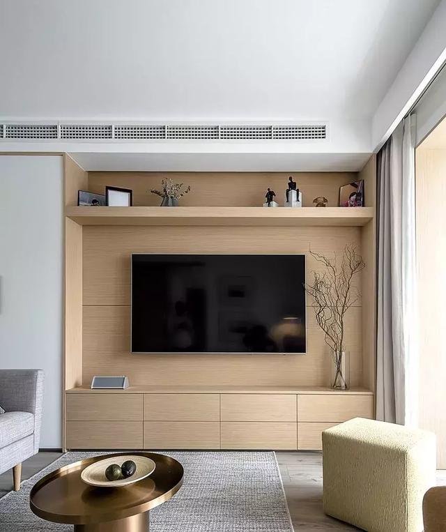 如果擔心擠得慌,可以借鑒下面這幾款,多給電視機四周留白,看著就敞亮多了。