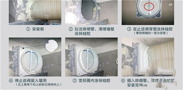 1、在每一根煙道預(yù)留止回閥洞口處安裝防火型煙道止回閥,先用專用膠水?dāng)嚢杷啵繚M止回閥的邊緣,然后安裝在預(yù)留止回閥洞口處。