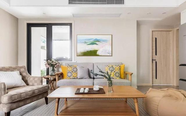 最近看到了一套85㎡的樣板間,采用開放式的設(shè)計(jì)顯得非常潮流時(shí)尚,客廳墻壁上采用淺咖色的格調(diào),搭配實(shí)木的地板和灰色的組合式沙發(fā),顯得非常溫馨舒適,為了讓客廳看上去更加時(shí)尚,還裝飾了一幅風(fēng)景壁畫。