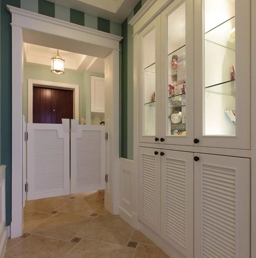 你還可以給這個走廊門洞加上一扇半腰門,把兩個空間給分開。半腰門的款式也很多,顏值也很高,能讓你家更美。