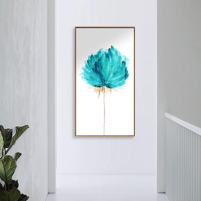 我個人更喜歡這樣的壁畫,裝飾玄關我覺得更富有色彩感,給人眼前一亮的視覺感,抽象的藍色的花簇的一種壁畫,藍色與白色空白的相互搭配,視覺盛宴的一種既視感,可以用于多種不同風格的玄關進行墻壁裝飾美化。