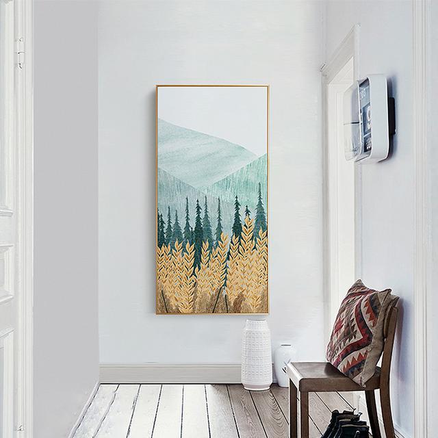 抽象藝術感的這種草原風景圖案的壁畫,很適合比較偏清新簡約風格的玄關進行裝飾,搭配原木色的畫框看起來也是十分的素雅,裝飾這種北歐風格的玄關看起來真是漂亮,營造出的視覺場景也是相當?shù)捏@艷。