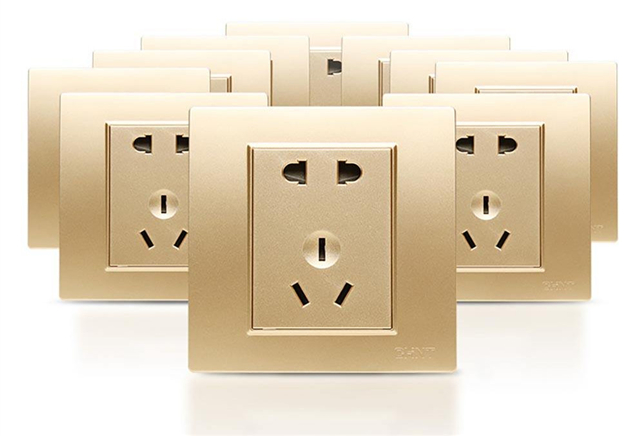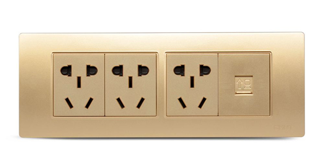 正泰鋼架墻壁開關面板NEW7L香檳金色一開五孔單控面板¥18.00。