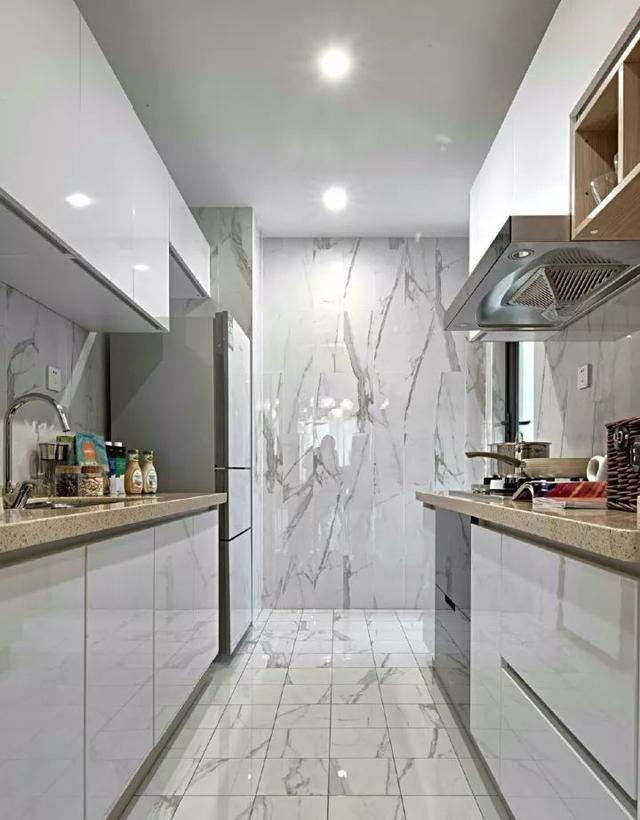 廚房非常明亮,這得得益于富有光澤的瓷磚以及櫥柜材質,看起來就更加整潔!