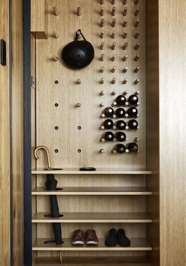 入口通道雖小但非常節(jié)省空間,配有巧妙的定制存儲單元,帶有掛釘,插槽和擱板