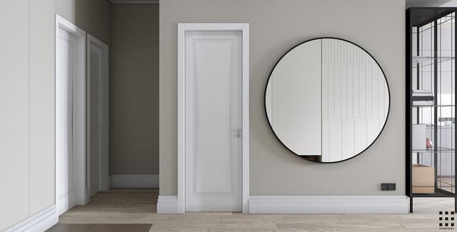 門廳里有一面巨大的圓形鏡子,將圓形的主題從客廳帶了進來。