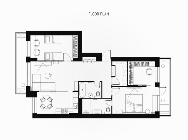 平面圖明確了套間淋浴房與主臥室以及附屬更衣室/家庭辦公室的位置。我們還可以看到主家庭浴室的中心位置,從休息室、家庭入口和兒童臥室對面的大廳很容易到達。入口門旁邊額外的儲物柜的驚人尺寸也被揭示出來。