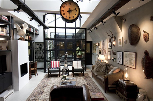 這類裝扮的用具常常是模仿工廠中的一些設備,整體看上去十分簡潔,常常是由一些鋼制管道組成幾何線條形狀,展現出一種異類的年代感,再搭上一些新舊家具以及許多皮質箱子、沙發,都成為工業風的絕佳標簽。