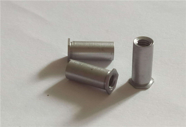 壓鉚螺母柱,又稱壓鉚螺柱或螺母柱,是應用于鈑金、薄板、機箱、機柜的一種緊固件,壓鉚螺母柱其外形一端呈六角形,另一端為圓柱狀,六角邊與圓柱狀中間有一道退刀槽,其內形為內螺紋,通過壓力機將六角頭壓入薄板的預置孔內(預置孔的孔徑一般略大于壓鉚螺柱的圓柱外徑)使孔的周邊產生塑性變形,變形部分被擠入壓鉚螺母柱的退刀槽內,使壓鉚螺母柱鉚緊于薄板上,從而在薄板上形成一下有效固定的內螺紋。