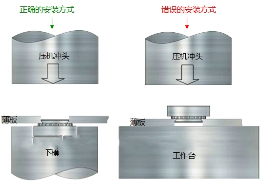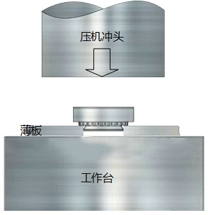 第一步: 將壓鉚螺母置于一個下模工裝內,工裝剛好容下一顆螺母。