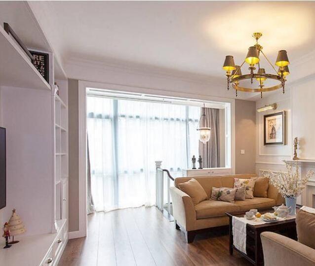 客廳,整體上布置的很簡潔,因?yàn)榍懊骊柵_和樓梯的緣故,沙發(fā)和茶幾就側(cè)著擺放,就是看電視累一點(diǎn),要轉(zhuǎn)著頭看。所謂的沙發(fā)墻已經(jīng)布置成了壁爐。