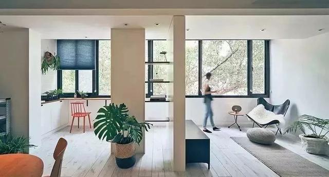 開放式的空間做了整體相似的設(shè)計(jì),整個(gè)四合一的空間讓人感覺寬敞而又明亮,讓這套房子的采光也變得非常棒。