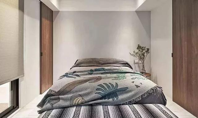 主臥室簡潔而又大方,床頭背景墻刷成了灰色,用小茶幾來代替床頭柜,臥室內(nèi)部舍棄了柜子之后,顯得更加的輕松、舒適。