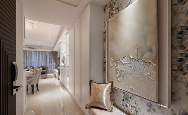 這邊是走廊的布置,家里還是做了一些收納的設(shè)計,另外還有壁紙、裝飾畫的布置,讓房間的溫馨氣氛更加的濃厚。