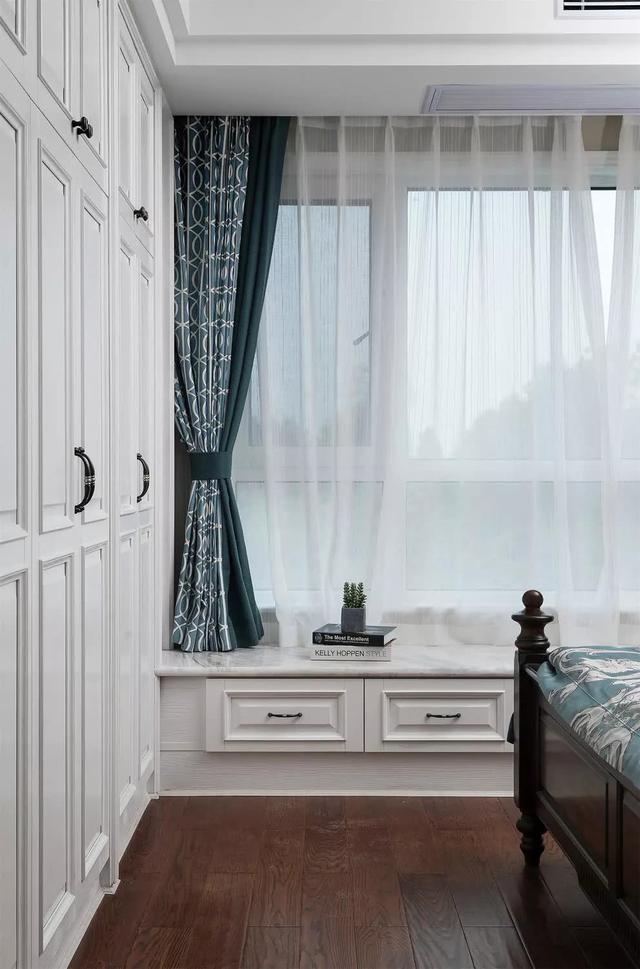 飄窗面積也很大,潔白的窗紗增添了朦朧感。