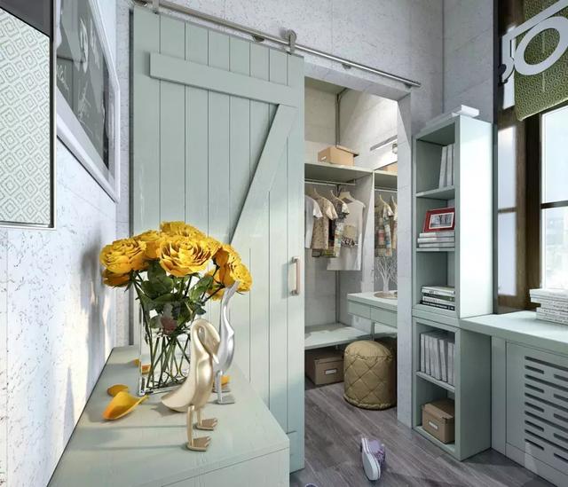 ▲陽臺衣帽間,搭配一扇網紅的谷倉門,顏值簡直要上天。