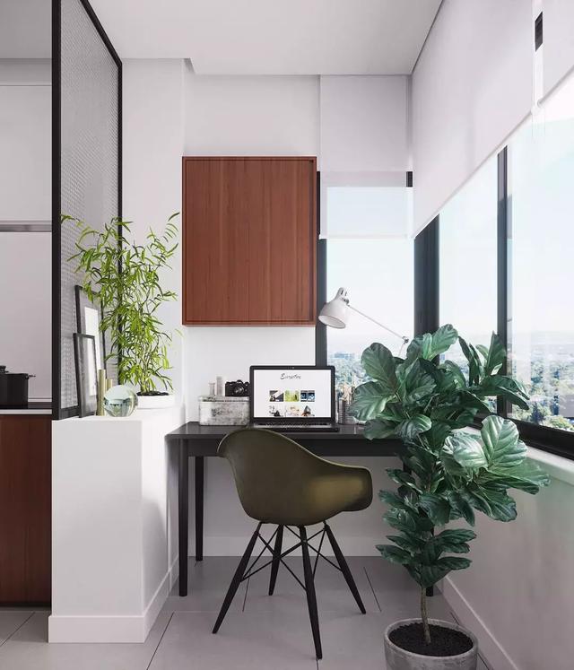 ▲封裝起來的陽臺,可以完全納入客廳的設計之中,在陽臺處設計一個造型美美噠的置物隔板,擺上最能提升格調的擺件、書籍或者綠植,都是相當完美的。如果覺得會客區域空間較小,還可以在陽臺處擺放桌椅,打造一個臨時的會客區域,輕松化解“客滿為患”的尷尬。