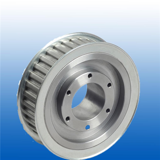 同步帶輪一般由鋼,鋁合金,鑄鐵,黃銅等材料制造。內孔有圓孔,D形孔,錐形孔等形式。表面處理有本色氧化,發黑,鍍鋅,鍍彩鋅,高頻淬火等處理。精度等級依客戶要求而定。