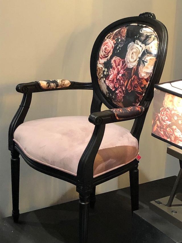 使用普通粉彩來對比較粗的印花織物。大膽,深色花香在時尚和家具方面都很時尚,并且通過在同一件作品中搭配柔和的花朵,可以擁有完全不同的外觀。椅背和手臂上的黑色框架和強大的玫瑰印花,使用柔和的粉紅色為座椅帶來更大的沖擊力。這是一個很好的策略,可以在不減少戲劇性的情況下減輕調色板的負擔。