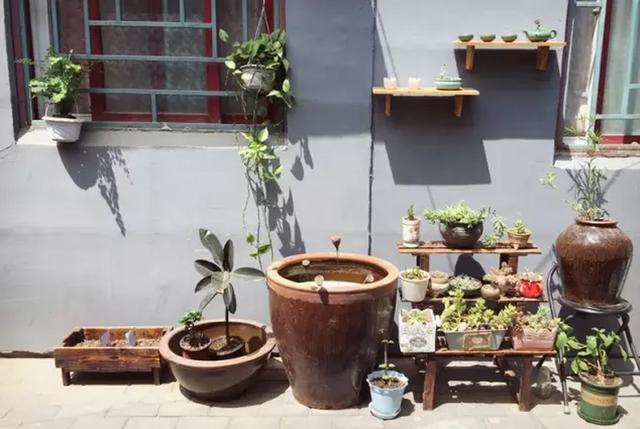 一些瓶瓶罐罐也成為植物的最佳安置點,這一點點的綠意裝飾,賦予了院子最大的活力。