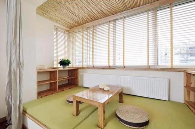 原先的陽臺也被我們打通,做一個小小的改造。我們將陽臺區域改造成了定制的榻榻米,再加上小方桌以及坐墊,打造成了一個品茶聊天的休息空間。