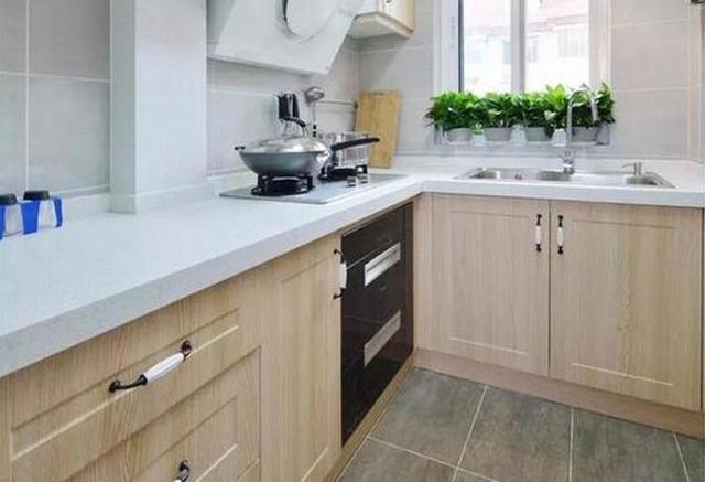 廚房里的定制櫥柜采用了u型布局,分區合理,也大大的提高了空間的利用率。白色石英石臺面搭配淺灰色的瓷磚,看上去干凈整潔。