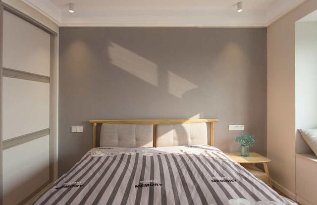 床頭用了灰色硅藻泥