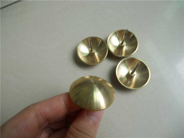 隨著技術的提升,泡釘的規格也越來越多,釘帽直徑小到3mm,大到45mm.都可訂做和。釘腳一般為1.4mm的鐵釘腳(一般不用銅的,因銅的硬度不如鐵)。