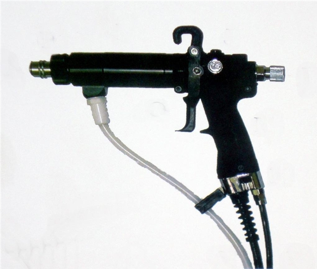 吸上式手動噴漆槍:主要是采用了高速氣流的動能流速使其噴槍出現了局部真空,很快的就產生強大的真空吸力快速的把承載物里面的油漆吸到噴嘴口加以霧化然后再噴出。這是噴漆效果為極佳的類別,是適合大面積噴射的一個過程。