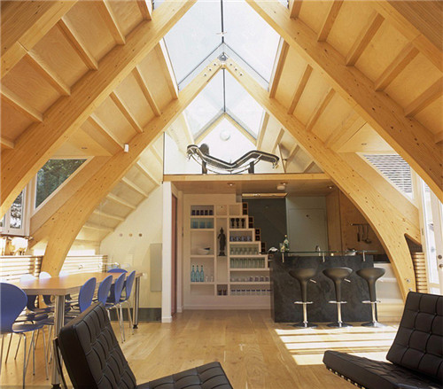 在該處區域開窗口,有效的提高了光亮感,據相關實驗測試得知,斜屋頂的采光效用會比普通窗戶高10%以上,所以每天開燈時間可晚一小時,這樣能更加便捷的享受夜晚星象,增添情趣,另外除了采光性好,同時隔熱保溫、隔音防噪等效用都較為明顯。