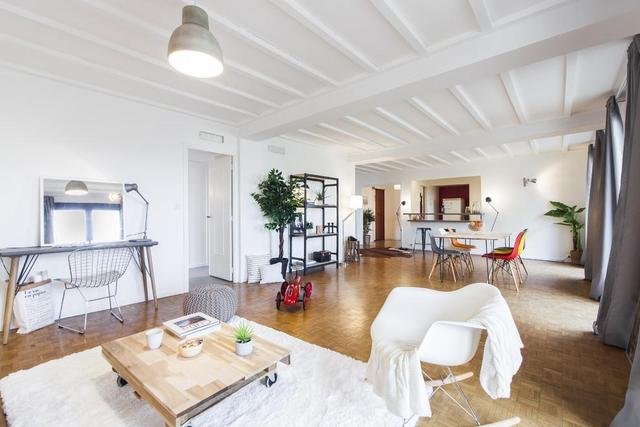 有部分網友提出,可以直接將它包在吊頂里面做成平頂,輕松解決。但我覺得這種方法是要看梁的高度的,如果太低的話,很容易給人壓抑的感覺,不是很可取。