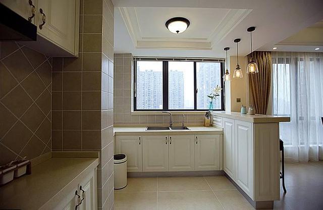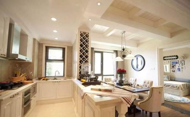 如果位置合適的話,干脆就把廚房設計在梁下里面,再砌一個立柱連接在一起,隔出一個小小的空間。如果有小伙伴喜歡浪漫的話,還可以在梁上面掛一些裝飾,設計一個小小的吧臺也是可以的