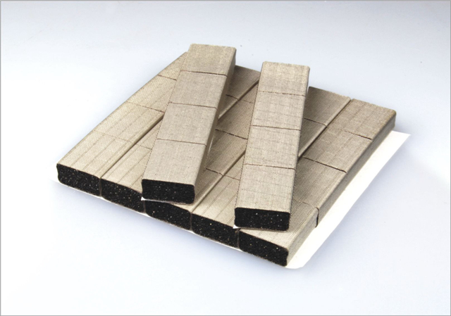 在阻燃海綿上包裹導(dǎo)電布,經(jīng)過(guò)一系列的處理后,使其具有良好的表面導(dǎo)電性,可以很容易用膠粘帶固定在需屏蔽器件上。