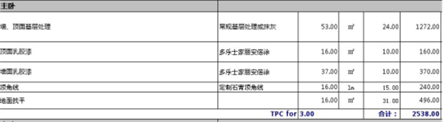 主臥總預算為2538元