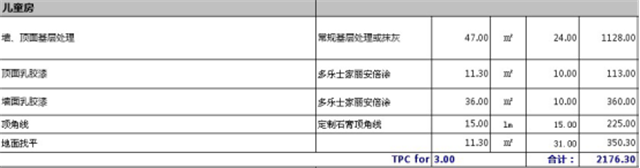 兒童房總預算為2176.3元