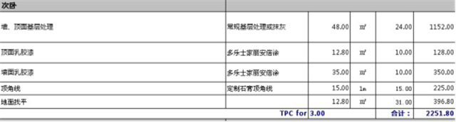 次臥總預算為2251元