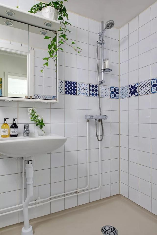 衛(wèi)生間的這種裝修,講真的還是頭一次見,只給墻上貼磚,地磚反而不鋪磚,也不吊頂,干濕分離都免了。