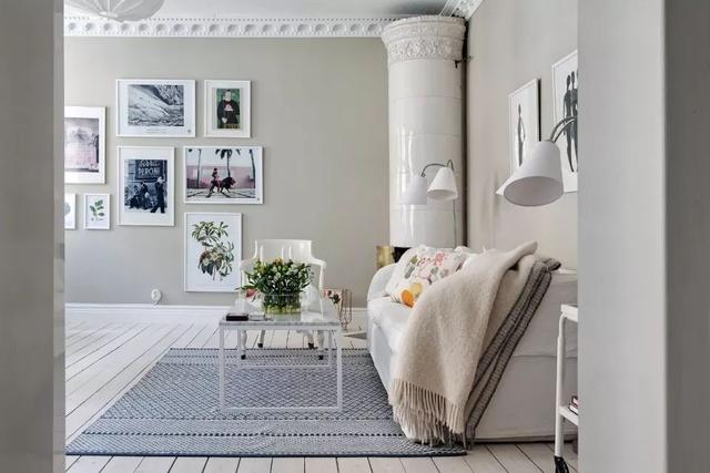 客廳,米色的墻面,白色的家具,超簡單的硬裝,舒適柔軟的大沙發(fā),略顯笨重,簡單剛硬的茶幾和扶手椅,冰冷的質(zhì)感,正好與沙發(fā)形成對比,中和軟硬感。
