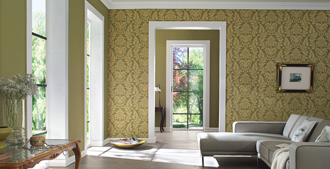 壁紙價格精選1:ROEN柔然壁紙經典歐式大馬士革時尚色系客臥高級無紡墻紙RN15033