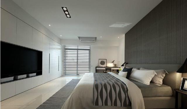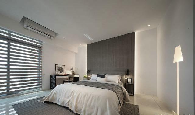 臥室裝的是掛壁式空調,是為了節省成本,不過用吊頂把空調的管子插座藏在了里面,這個解決方法還算可以。