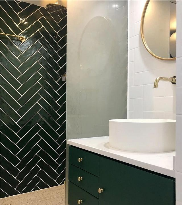 淋浴區(qū)墻面特意請了經(jīng)驗豐富的老師傅,人字拼貼工期相對普通瓷磚的貼法時間要久一點,瓷磚的損耗率也比較高。