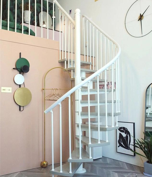 原來的樓梯換成占地面積更小的旋轉(zhuǎn)樓梯,直徑是一米三,臺階60公分。整體的曲線設(shè)計,比原來的直梯更優(yōu)美。