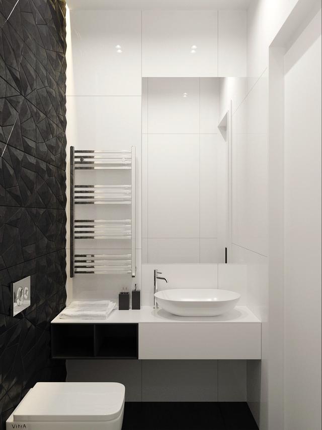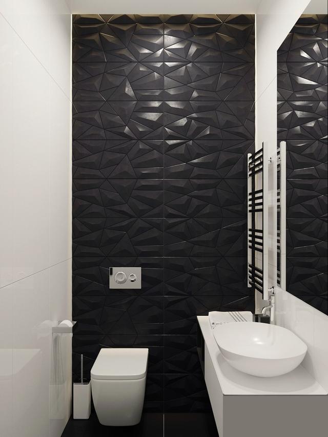 另一間黑白色調為主題的衛浴間,以兩色分區。
