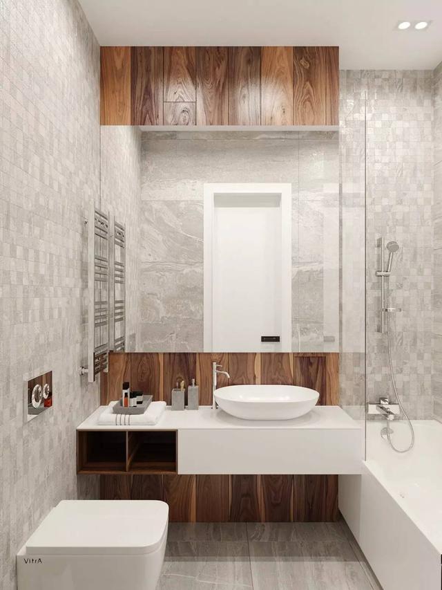 這個衛浴間選得方鏡子足夠大,實力增加視覺空間。