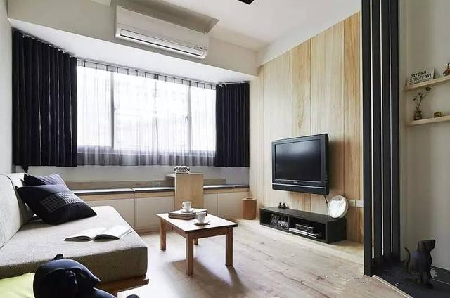 客廳改造并不大,依舊是光潔平整的墻面,用紋理豐富的木質,將原有的斑駁舊墻覆蓋,在不破壞整體美感的同時,帶來更為簡樸的視覺享受。