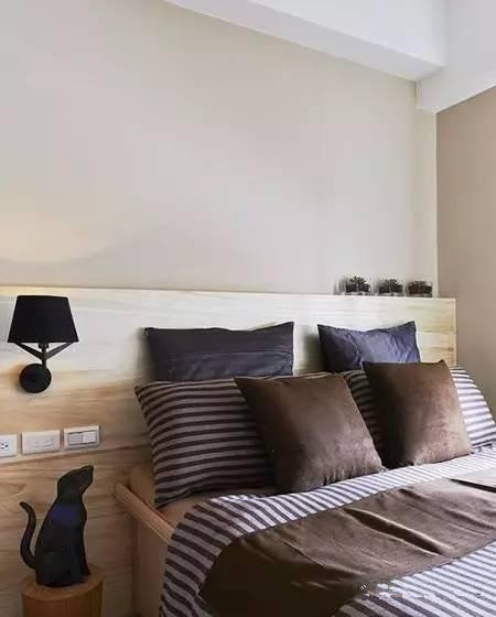 對于主臥的設計依舊是簡單舒適最好,墻面是非常淺淡的咖啡色,突出墻面的白色橫梁,恰好可以當做吊頂,化解了過于單調的尷尬。