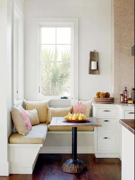 利用轉角這個雞肋的角落,安裝轉角卡座,不僅合理的利用了這部分空間,提高了空間的利用率,同時還提升空間格調,讓家逼格滿滿。